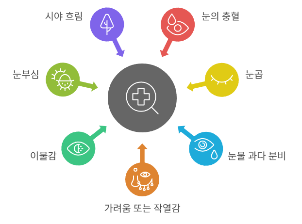 | 알레르기성 결막염 | 꽃가루, 진드기, 반려동물 | 가려움, 눈물, 반복성 | 없음 |