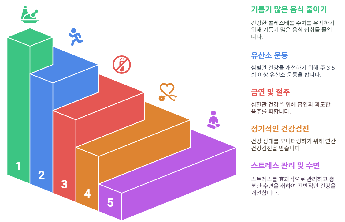 => 운동은 필수입니다. 특히 유산소 운동은 LDL을 낮추고 HDL을 높여줍니다.