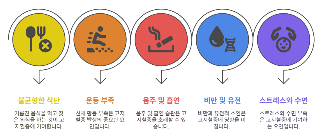 고지혈증은 혈중 지질(콜레스테롤, 중성지방) 수치가 비정상적으로 높은 상태로, 심근경색, 뇌졸중, 동맥경화 같은 심혈관질환의 주요 원인입니다.