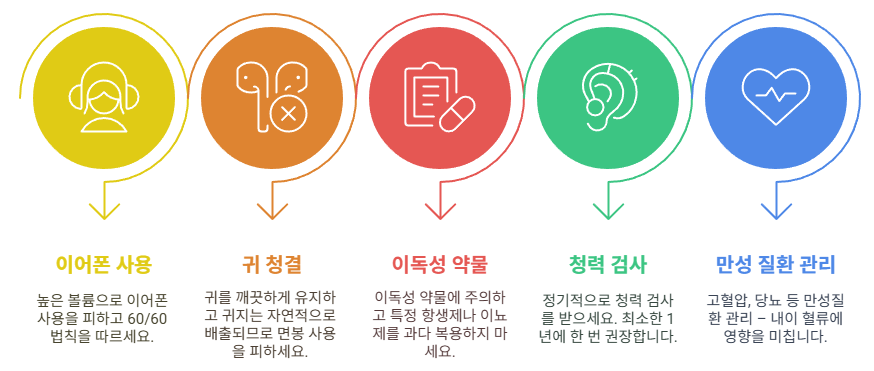 | 초기 | 약물 치료, 귀지 제거 | 일시적 난청일 경우 회복 가능 |