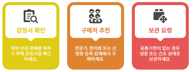 => 산림청 등록 판매처, 한의원, 감정 가능한 전문 기관에서만 구매하시길 권장합니다.