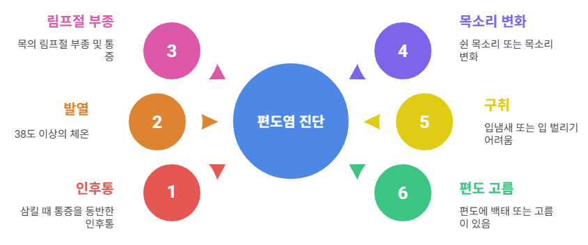 => 유사한 증상이 많지만, 편도염은 편도선에 염증이 집중된 질환입니다.