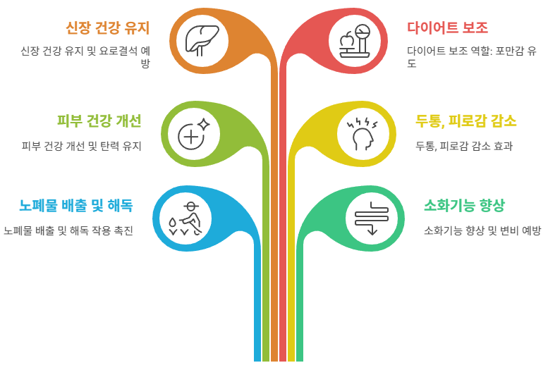 물은 인체의 약 60%를 구성하며, 체온 조절, 혈액 순환, 노폐물 배출, 세포 대사 등 거의 모든 생리 작용에 관여합니다. 수분이 부족하면 집중력 저하, 피로, 변비, 피부 트러블까지 다양한 건강 문제로 이어질 수 있습니다.
