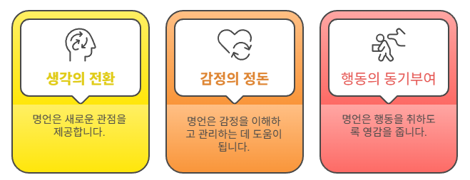 ▶ 명언을 단순히 읽는 것을 넘어 자신만의 문장으로 재해석하는 과정에서 깊은 내면화가 이뤄집니다.